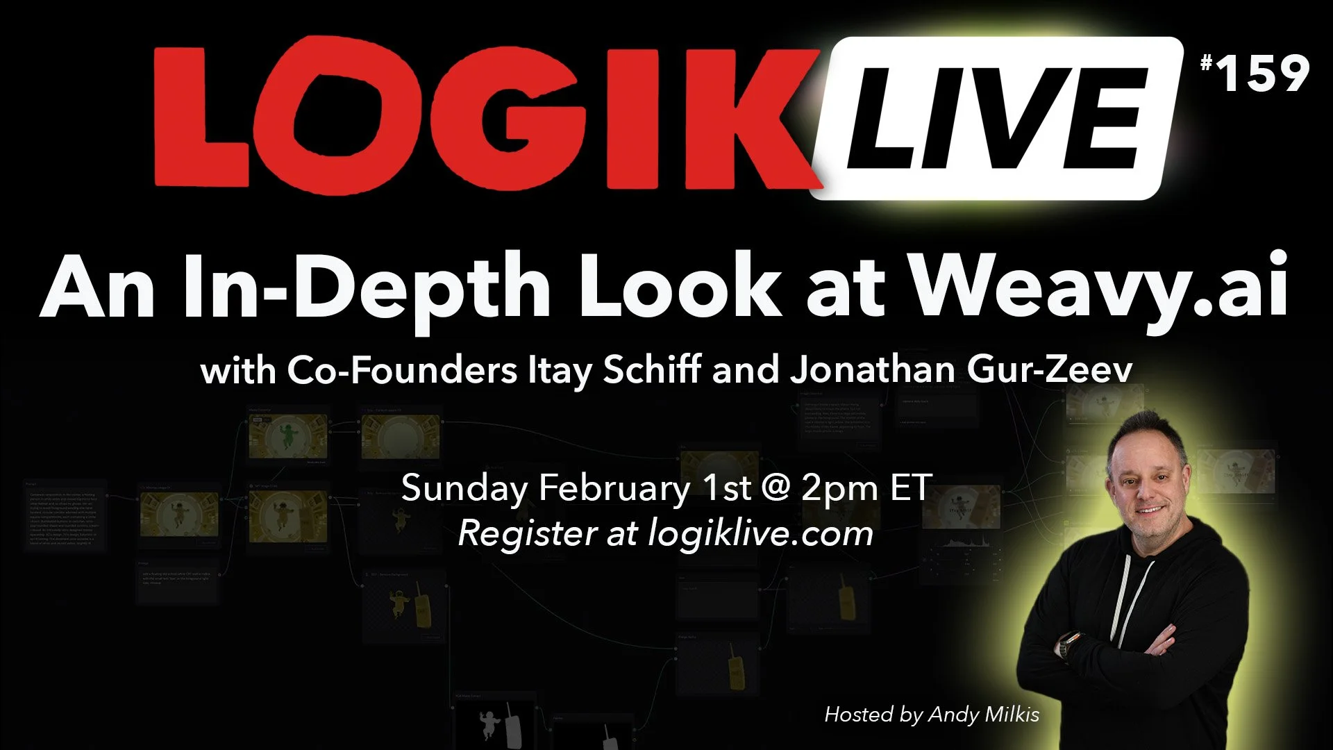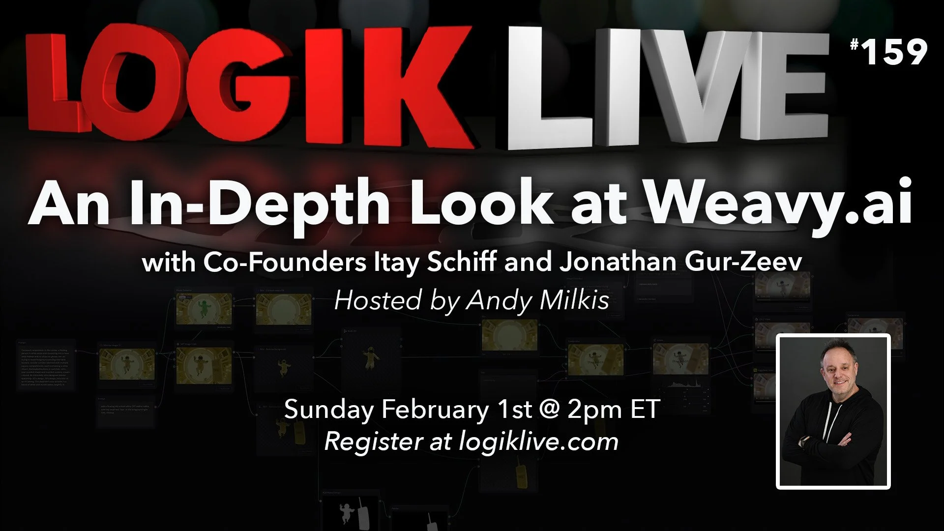 🎁 Giveaway Alert 🎁 – Our friends at Weavy.ai have prepared a 20% coupon code for Logik members. Please register below to receive the code after Sunday’s show. We’re also giving away 1 month of Logik Academy Pro and 1 month of The Boris FX Suite! Be sure to register at Logik.tv for your chance to win.